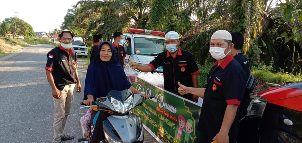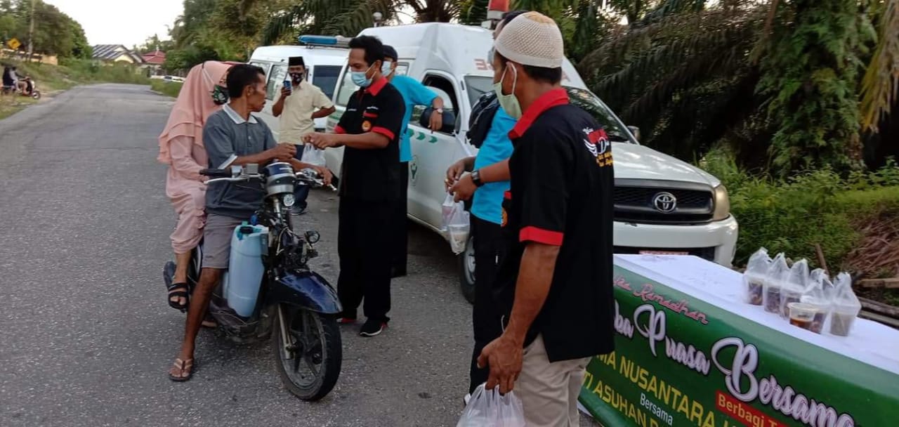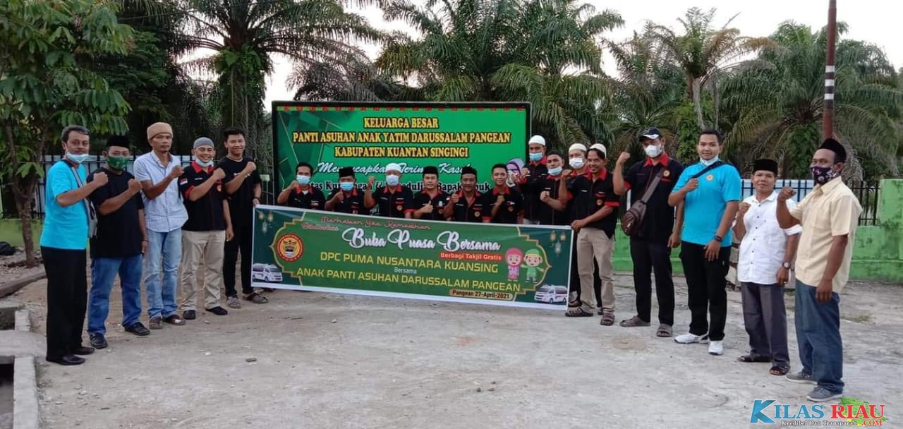 DPC Perkumpulan Unit Mobil Ambulan (PUMA) Nusantara Kabupaten Kuantan Singingi (Kuansing) menggelar berbagi takjil dan berbuka puasa bersama dengan anak yatim di Panti Asuhan Darussalam Desa Pasarbaru Kecamatan Pangean, Kabupaten Kuantan Singingi (Kuansing), Riau pada Selasa (27/04/2021).