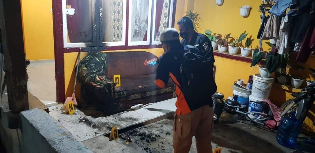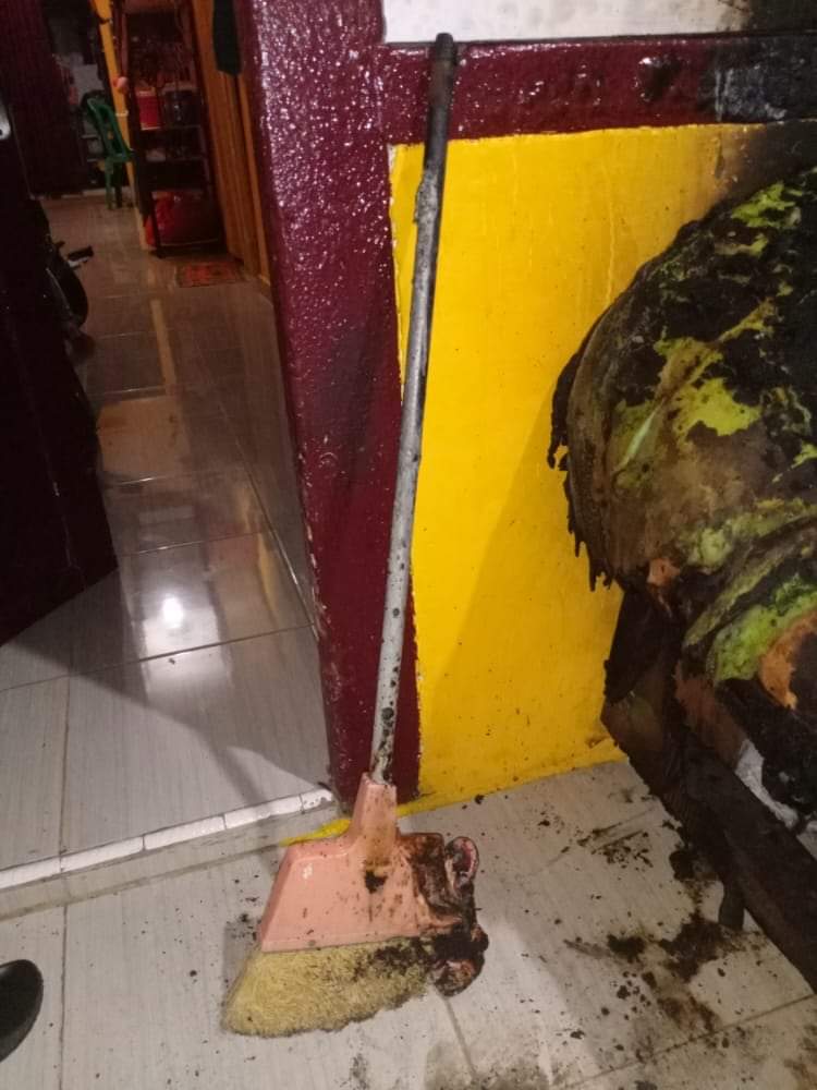 Korban yang waktu itu duduk dengan temannya di dekat lembaga pemasyarakatan mengetahui kejadian tersebut setelah anaknya bernama Geo berlari dan menjumpai korban dengan mengatakan "Yah, rumah kita dibakar orang" kemudian korban berlari kerumah dan melihat api yang masih menyala didepan rumah dan berusaha memadamkan api tersebut.