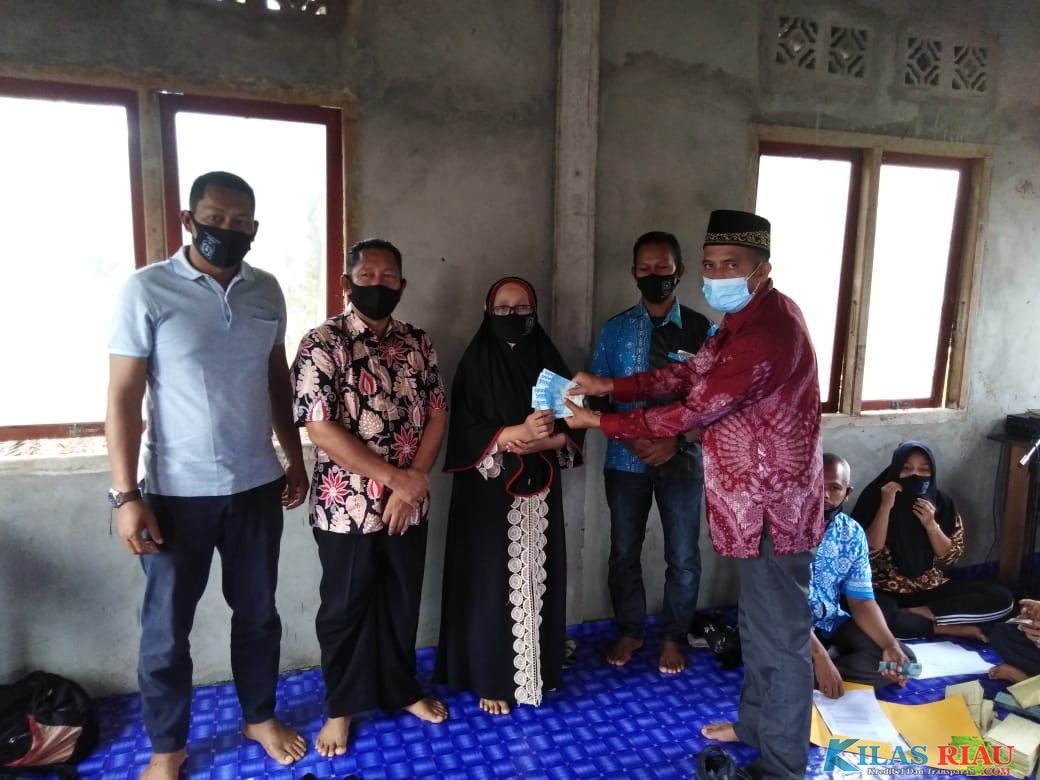 KILASRIAU.com - Pemerintah Desa (Pemdes) Terusan Beringin Jaya, Kecamatan Pelangiran, Kabupaten Inhil menyalurkan Bantuan Langsung Tunai (BLT) tahap 1 untuk masyarakat yang terdampak Covid 19, Rabu (05/05/21).