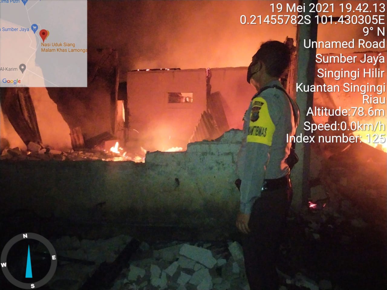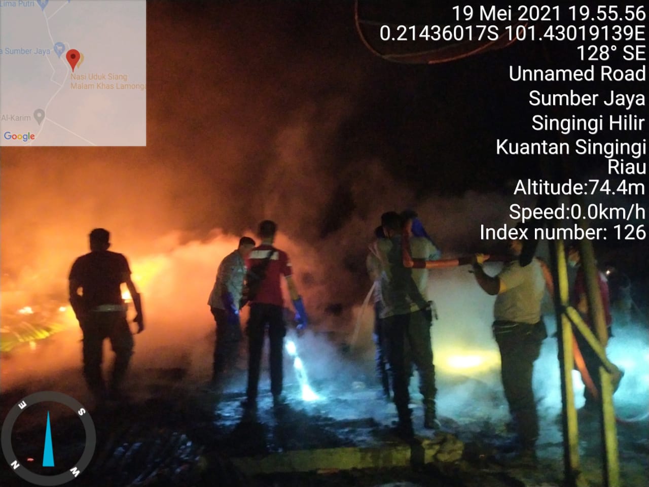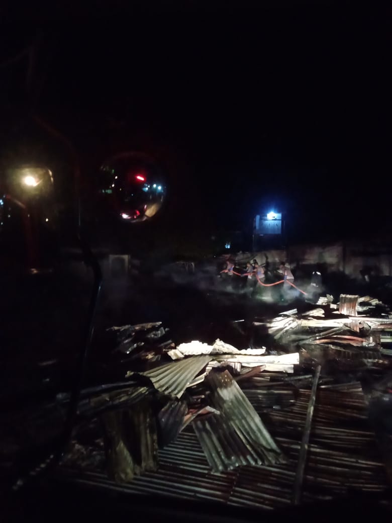 Rumah milik warga dan gudang kosong di kawasan Pasar Lama Desa Sumber Jaya Kecamatan Singingi Hilir, Kabupaten Kuantan Singingi (Kuansing), Riau pada Rabu (19/05/2021) sekira pukul 18.00 WIB, rata dengan tanah akibat di lalap si jago merah.