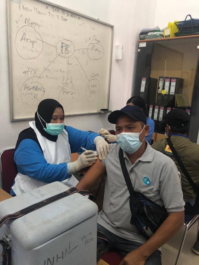 KILASRIAU.com - PLN ULP Tembilahan bekerjasama dengan UPT Puskesmas Tembilahan melaksanakan vaksinasi tahap pertama dengan memberikan ratusan vaksin bagi pegawai dan mitra kerja. Agenda tersebut dilangsungkan di kantor PLN ULP Tembilahan, Jalan Gunung Daek, Tembilahan, Sabtu (22/05/2021).