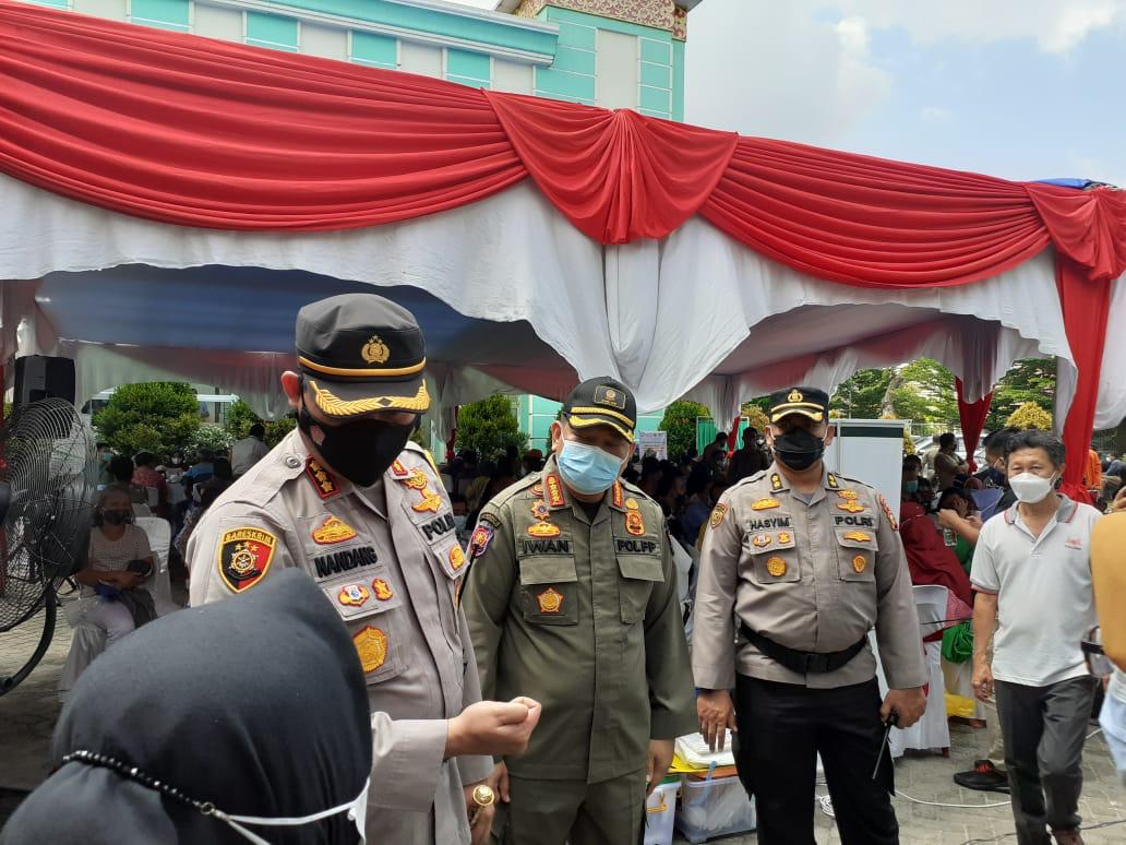 KILASRIAU.com - Kepolisian Daerah (Polda) Riau mengerahkan jajarannya untuk menggencarkan potensi penularan Virus Corona (Covid-19). Salahsatu langkahnya, dengan pemberian vaksin kepada masyarakat. Kegiatan ini dimulai dari Kota Pekanbaru. Terobosan tersebut dengan cara door to door atau dengan pola mendatangi pemukiman penduduk untuk pemberian vaksin.
