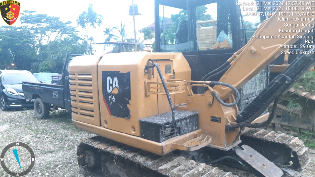 Adapun barang bukti yang diamankan berupa:1 unit excavator mini merk CAT 305.5E2,6 lembar karpet,