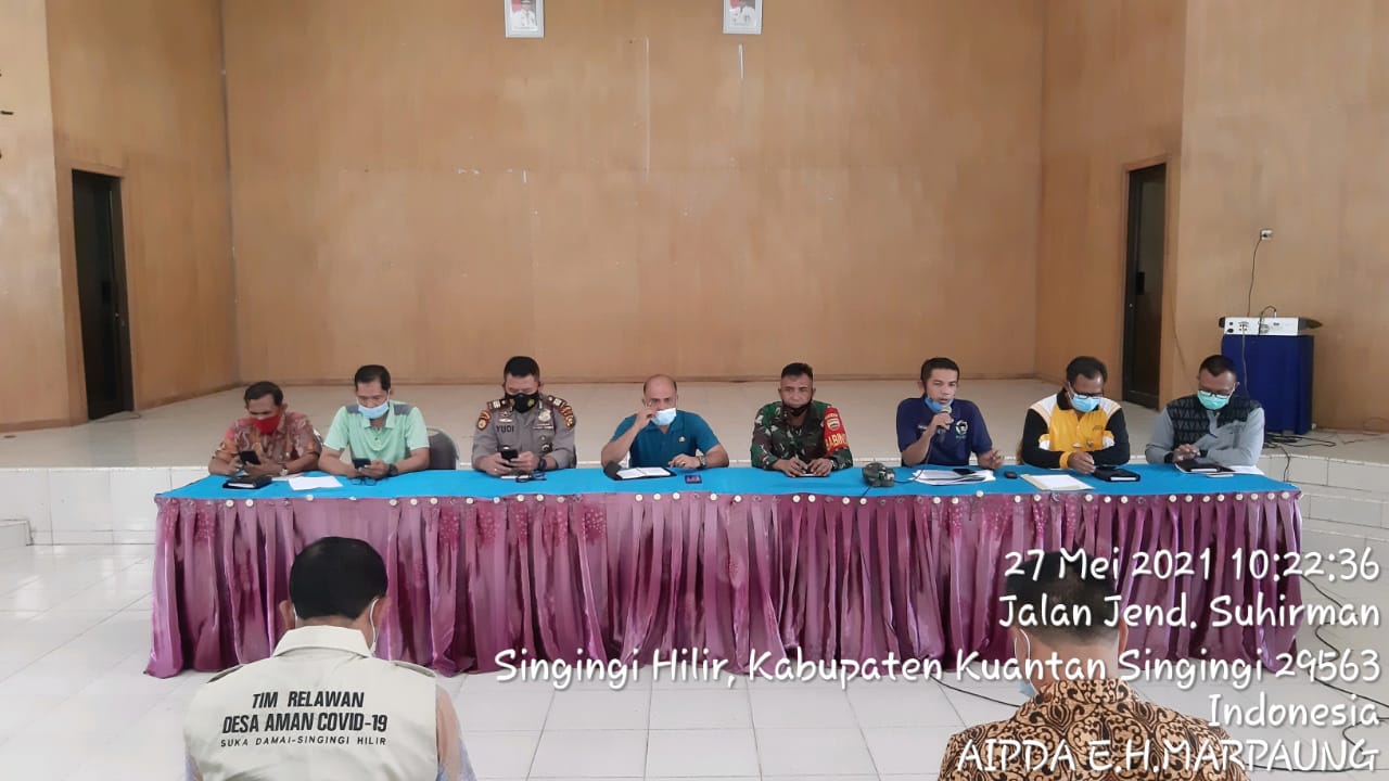 Kuantan Singingi, KilasRiau.com - Dalam rangka silaturrahmi Kepala Kepolisian Sektor (Kapolsek) Singingi Hilir, AKP Waras Wahyudi, S.H dengan Forum Koordinasi Pimpinan Kecamatan (Forkopimcam) dan para Kepala Desa (Kades) pada Senin (27/05/2021) di Aula Kantor Kecamatan Singingi Hilir.