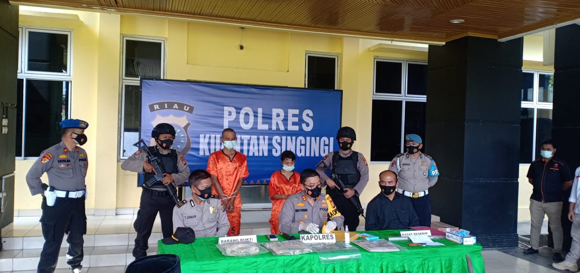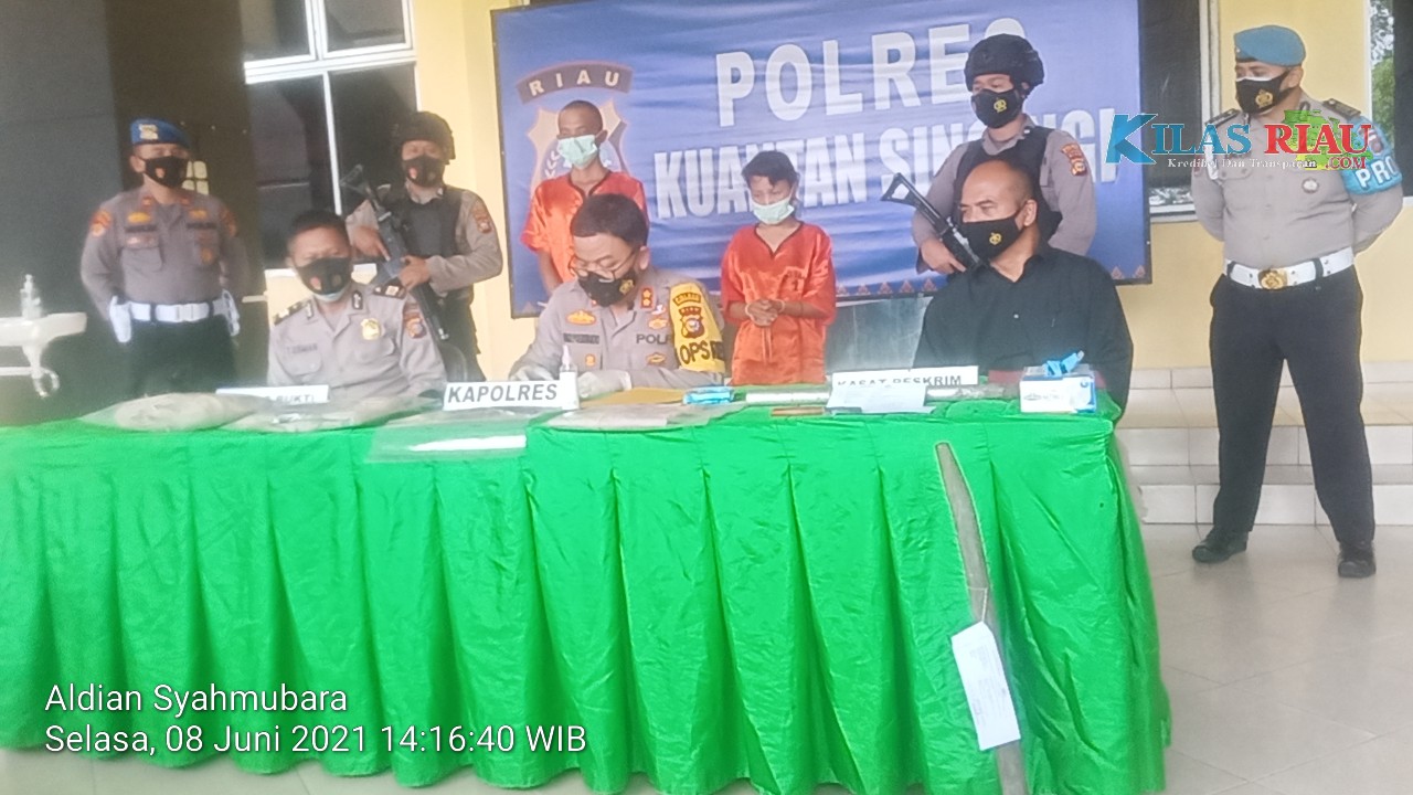 Kepolisian Resor (Polres) Kuantan Singingi (Kuansing) gelar Pers Release terkait pelaku kekerasan terhadap anak yang mengakibatkan hilangnya nyawa dan luka berat sebagaimana Laporan Polisi Nomor: LP/96/V/2021/Riau/SPKT/Res Kuansing tgl 31 Mei 2021, di Markas Kepolisian Resor (Mapolres) Kuansing pada Selasa (08/06/2021) siang.