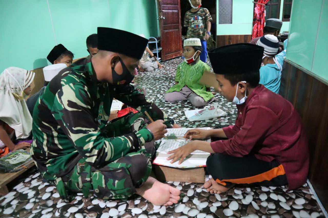 Satgas TMMD ke 111, Memberikan Bimbingan Mengaji Kepada Anak-anak di Desa Sasaran