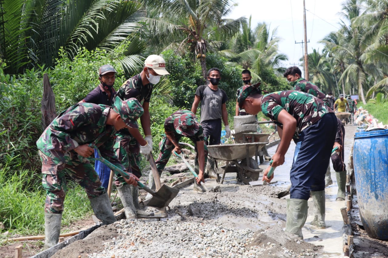 Pelaksanaan dihari ini dalam kegiatan TMMD, tampak warga sangat antusias ikut bekerja. TNI dan warga bersama-sama mengerjakan semenisasi Jalan Yakup 2 yang merupakan sasaran fisik kedua, program TMMD ke-111 Kodim 0314/Inhil.