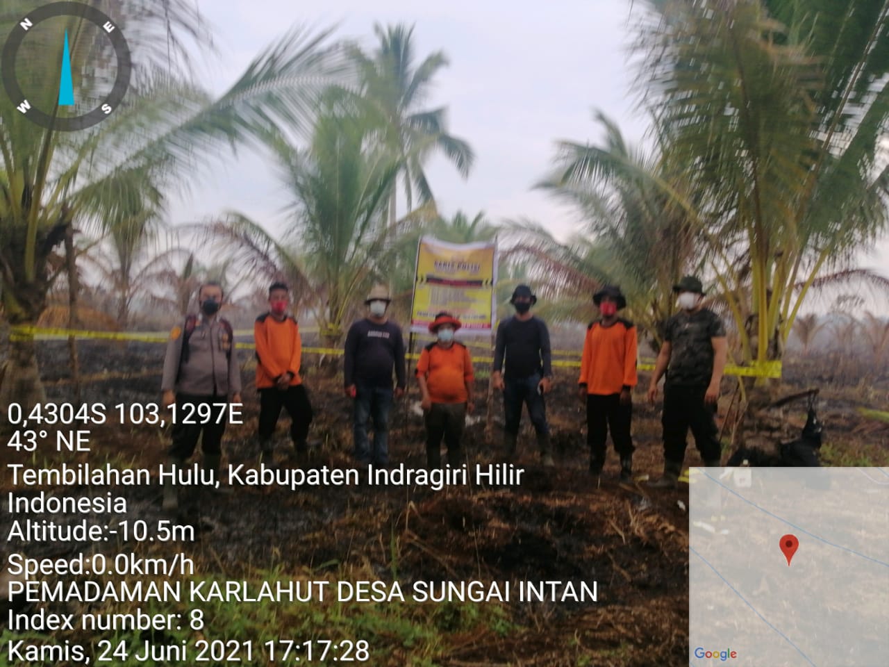 "Pemadaman kebakaran lahan dibantu oleh Kapolsek dan Tim Polsek Tembilahan Hulu, Bhabinkamtibmas, Babinsa, dan Relawan MPA Desa serta masyarakat," kata Efendi, Jum'at (25/6/21).