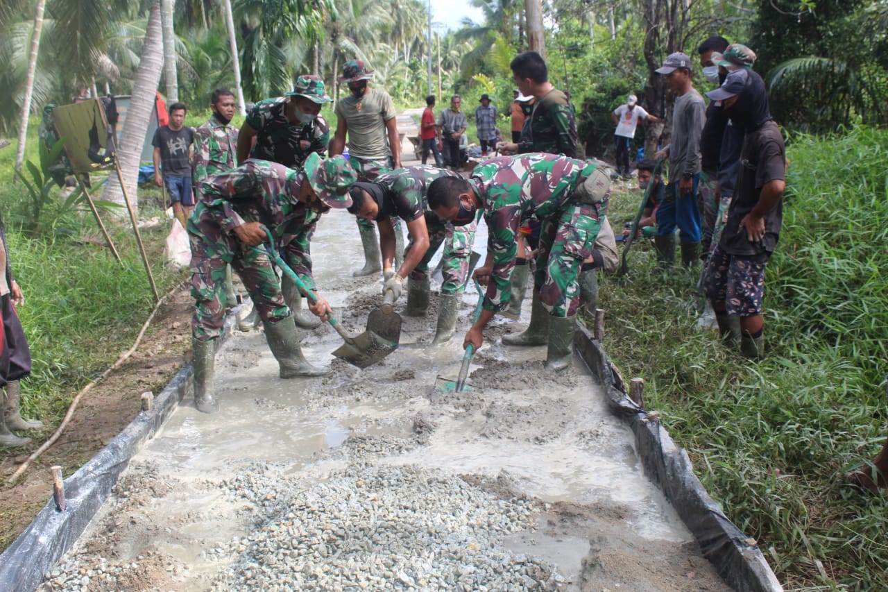 KILASRIAU.com - Satgas TMMD ke 111 Kodim 0314/lnhil terus menggeber pengerjaan sasaran fisik semenisasi Jalan Yakub 2 demi untuk mengejar target persentase sasaran hari ini, Senin (28/6/2021).
