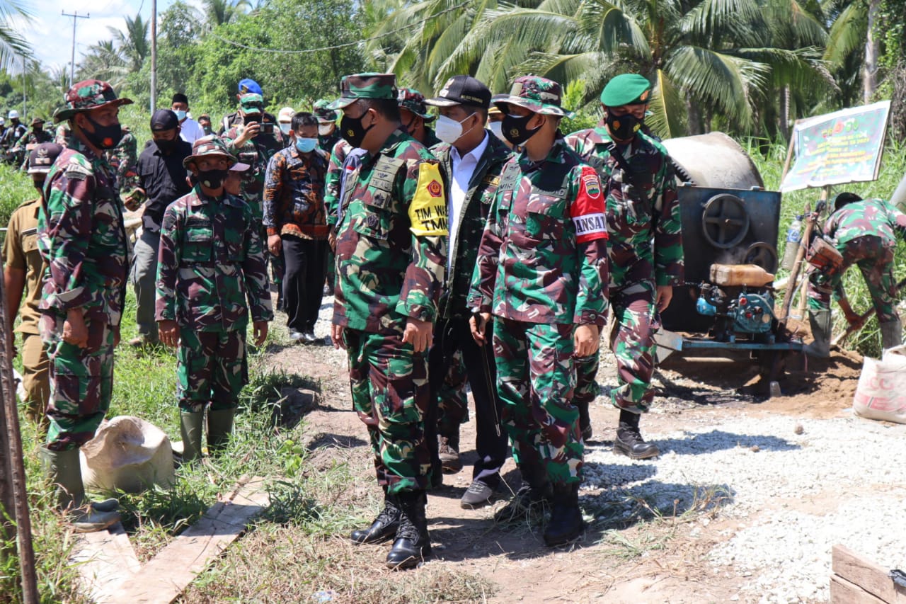 KILASRIAU.com - Tim Wasev TMMD Mabes TNl meninjau ke lokasi sasaran Tentara Manunggal Masuk Desa (TMMD) ke 111 di Kecamatan Pelangiran, Kabupaten Inhil, Riau, Rabu (30/6/21).