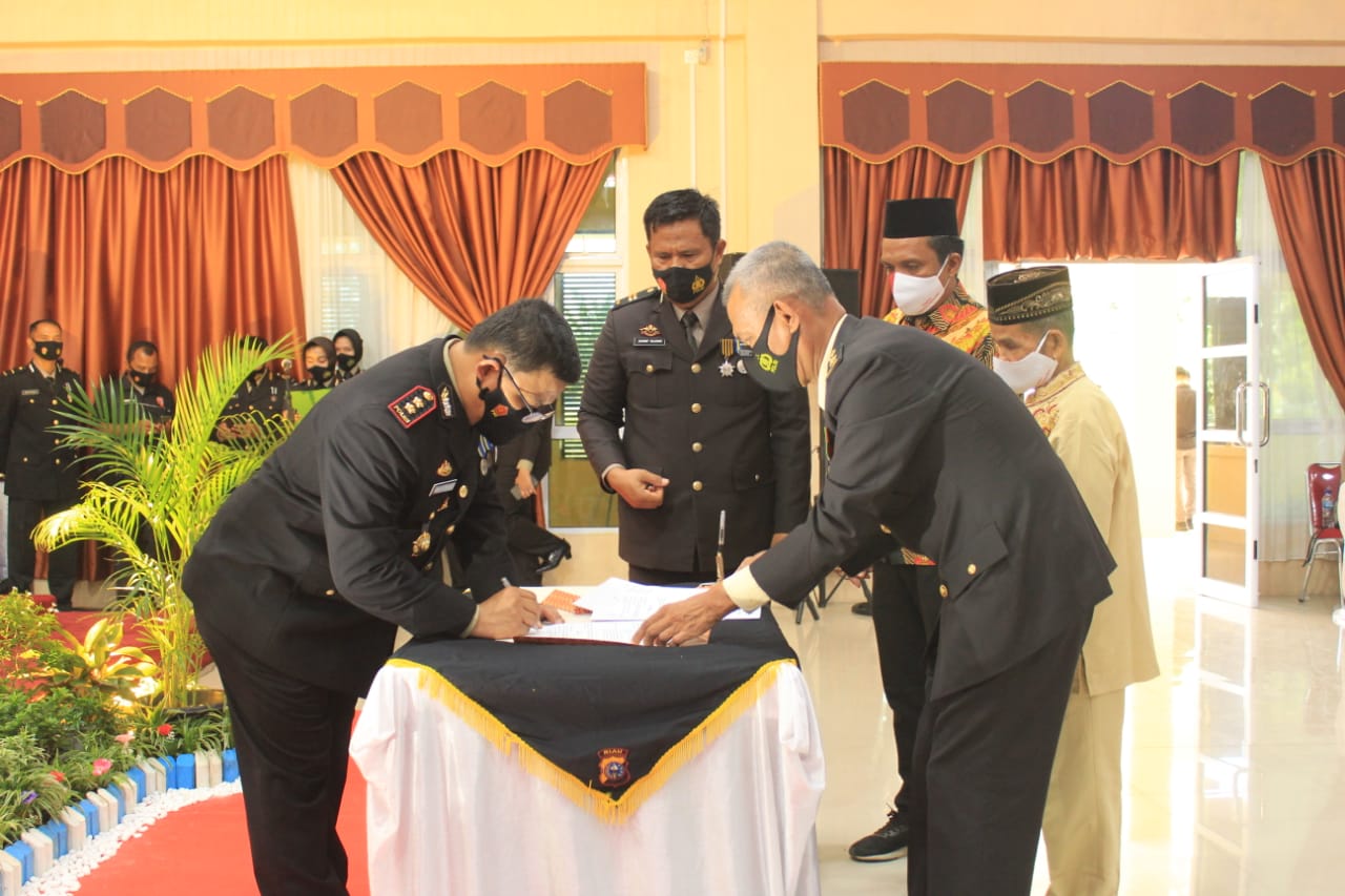 Dalam acara syukuran tersebut juga dilakukan Penandatanganan Berita Acara Hibah lahan dari tokoh masyarakat Teberau Panjang kepada Polres Kuansing, yang kedepannya akan dipersiapkan untuk pembentukan Polsek di Kecamatan Gunung Toar. Syukuran juga dilakukan dengan prosesi pemotongan Tumpeng oleh Kapolres Kuansing (Perwakilan Personel Tertua dan Termuda) serta