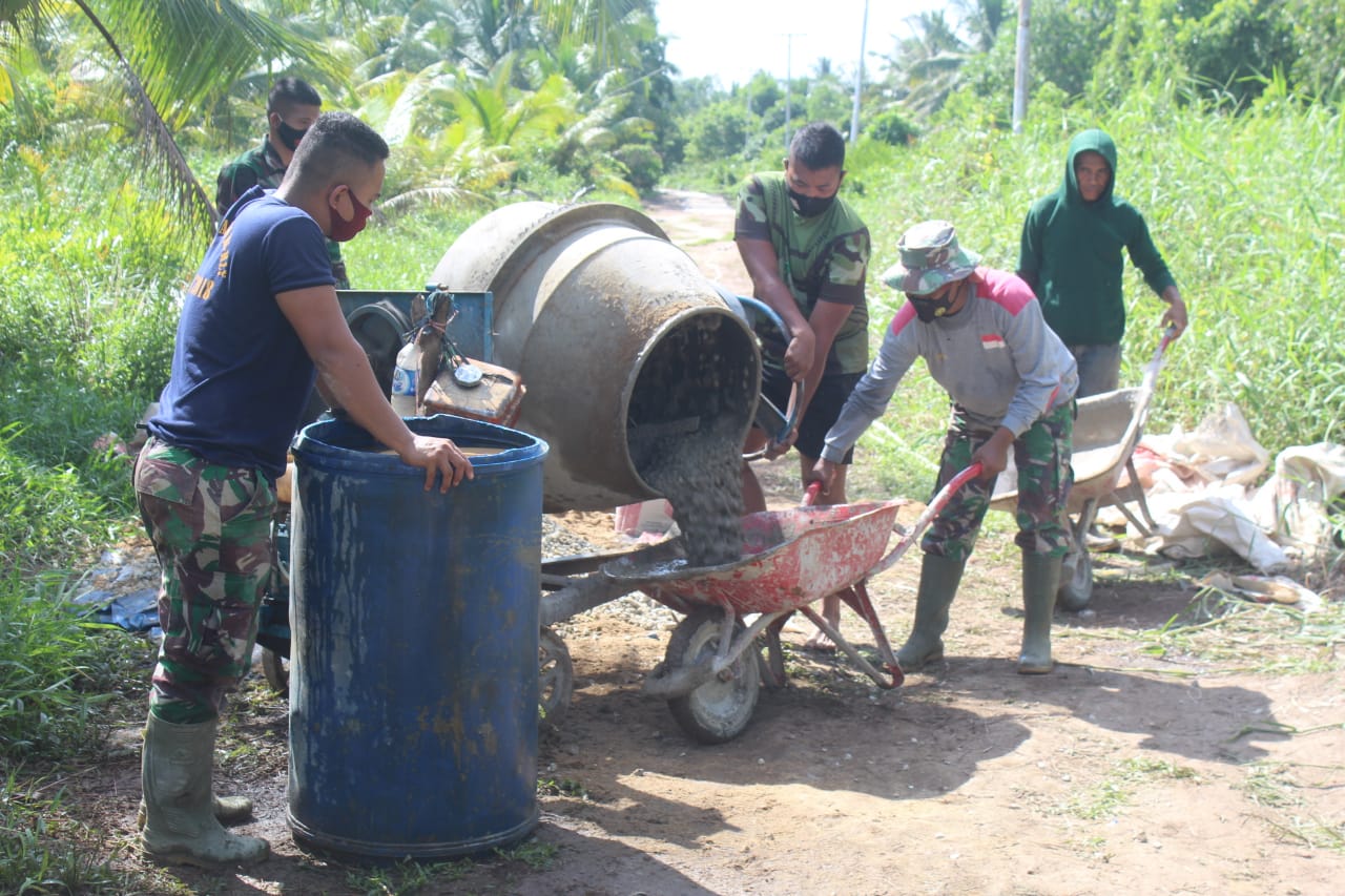 Kades Terusan Beringin Jaya Kerahkan Masyarakatnya Untuk Membantu Anggota Satgas TMMD