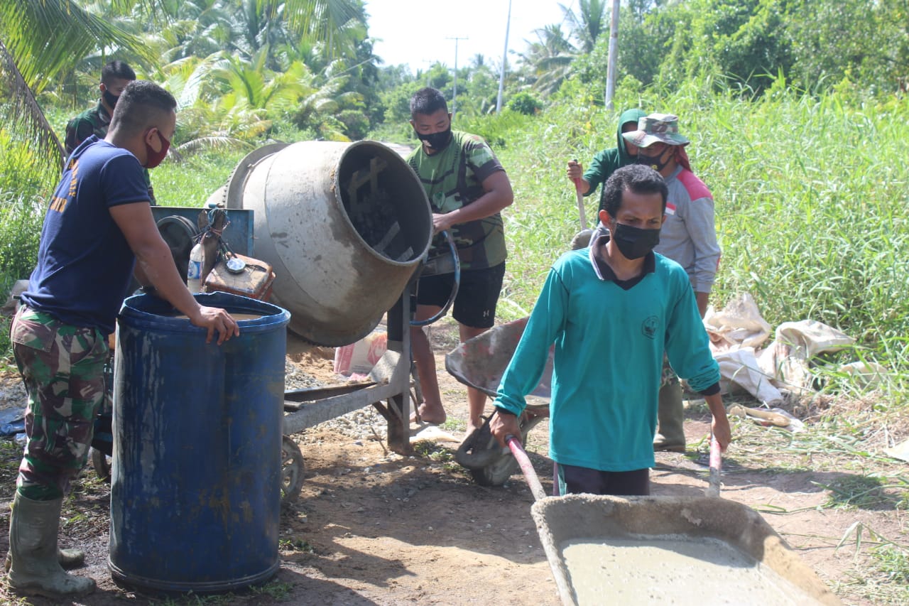 KILASRIAU.com - Ditempat yang berbeda, masyarakat dan TNl dari Satgas TMMD ke 111 Kodim 0314/lnhil terus berupaya menyelesaikan target semenisasi jalan penghubung antara Desa Terusan Beringin Jaya dengan Desa Teluk Bunian, Minggu (04/07/2021).