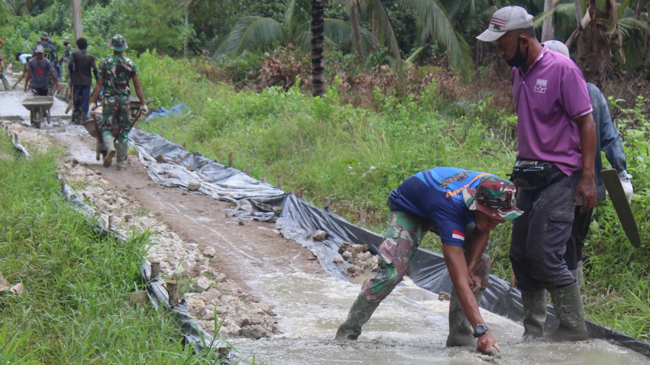"Mekipun demikian, anggota satgas bersama masyarakat tetap semangat dalam melaksanakan gotong royong demi untuk mencapai hasil persentase target sasaran," papar Kapten Inf R Sagala.