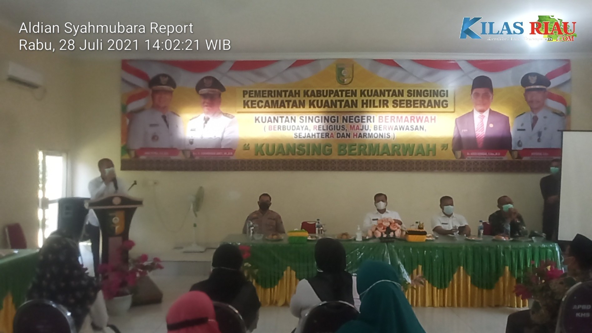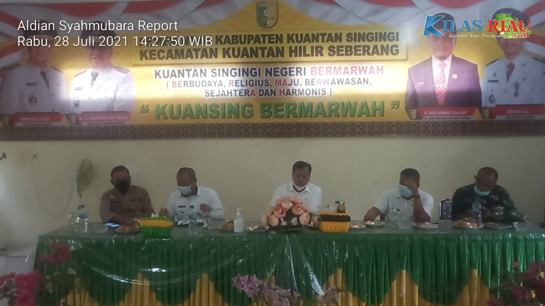 Di samping itu, Camat Kuantan Hilir Seberang Novrion, S.Sos dalam sambutannya juga menyampaikan, berbagai macam bentuk upaya untuk lakukan pencegahan dan memutuskan mata rantai penyebaran covid-19.
