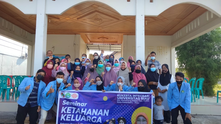 KILASRIAU.com - Mahasiswa Kuliah Kerja Nyata Integrasi Abdimas Universitas Riau 2021 Kelurahan Pematang Kapau, Kecamatan Kulim, Kota Pekanbaru mengadakan seminar ketahanan keluarga guna mempertahankan hubungan rumah tangga di tengah pandemi.
