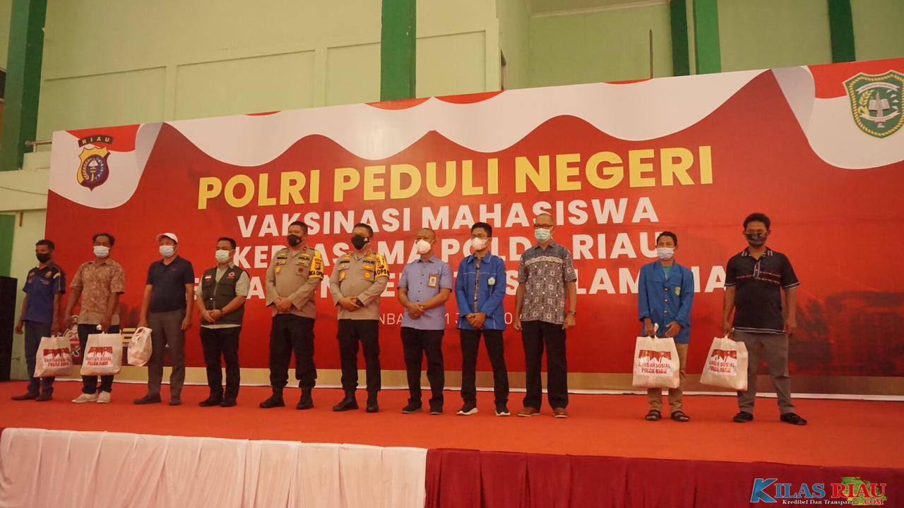 PEKANBARU, KilasRiau.com - Plt Presiden Mahasiswa (presma) Badan Eksekutif Mahasiswa (BEM) Universitas Islam Riau (UIR) sekaligus koordinator nusantara sumatera BEMNUS, Agus widodo mengapresiasi kapolda riau Irjen Pol Agung Setya Imam Effendi dalam agenda polri peduli negeri dengan melakukan vaksinasi bersama mahasiswa dan bantuan sosial (bansos) yang bekerjasama dengan universitas islam riau, Sabtu (31/07/2021) di PKM Universitas Islam Riau.