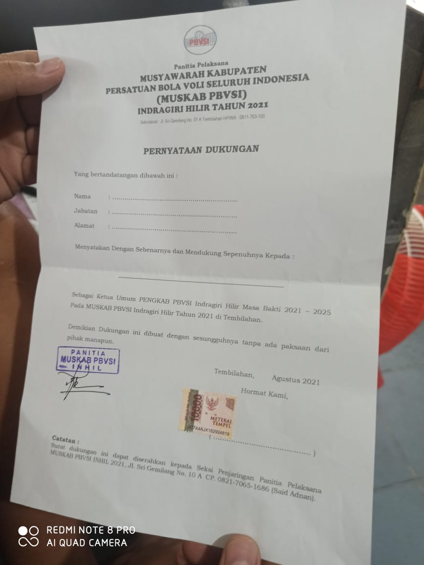 "Undangan resmi Muskab PBVSI tidak ada saya terima, hanya dari mulut ke mulut saja. Selain itu jika saya tahu ada dua calon kandidat Ketua PBVSI Inhil, jelas saya tidak akan menandatangani surat pernyataan dukungan terhadap 1 calon yang disodorkan oleh pihak panitia itu," sebut Riza.