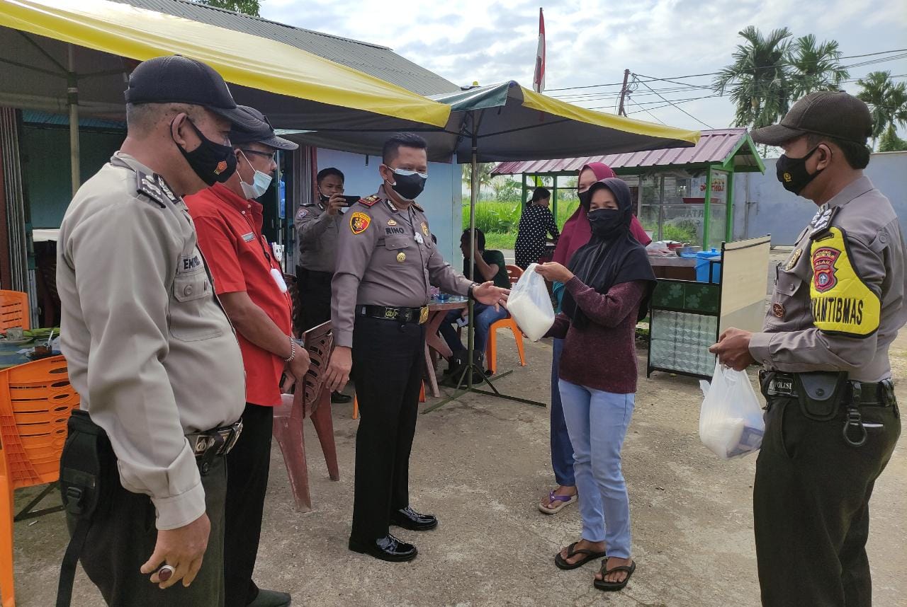 Polsek Tembilahan Hulu Berbagi Puluhan Sembako Kepada Warga Sekitar Mapolsek