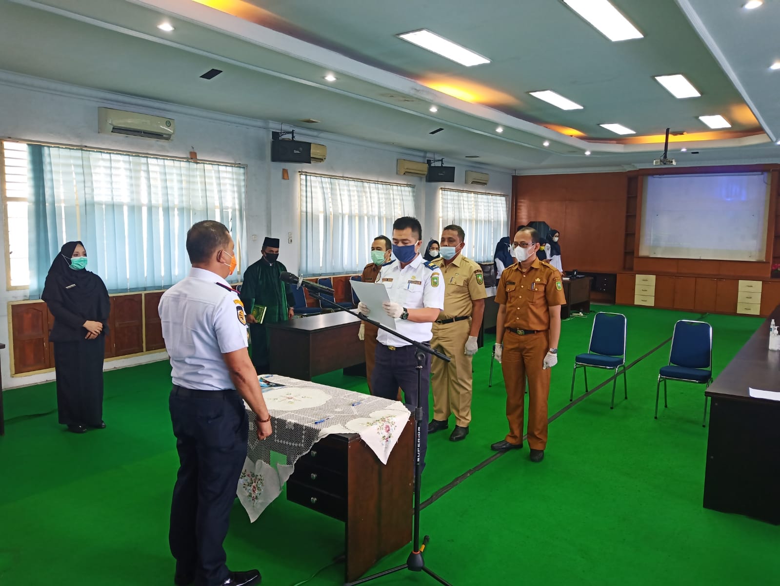 KILASRIAU.com – Bertempat di aula Dinas Perhubungan Kepala Dinas Perhubungan Provinsi Riau Andi Yanto, telah mengukuhkan M Hatta Yahya sebagai Kepala Seksi Angkutan Pelayaran Rakyat dan ASDP Dinas Perhubungan Provinsi Riau.