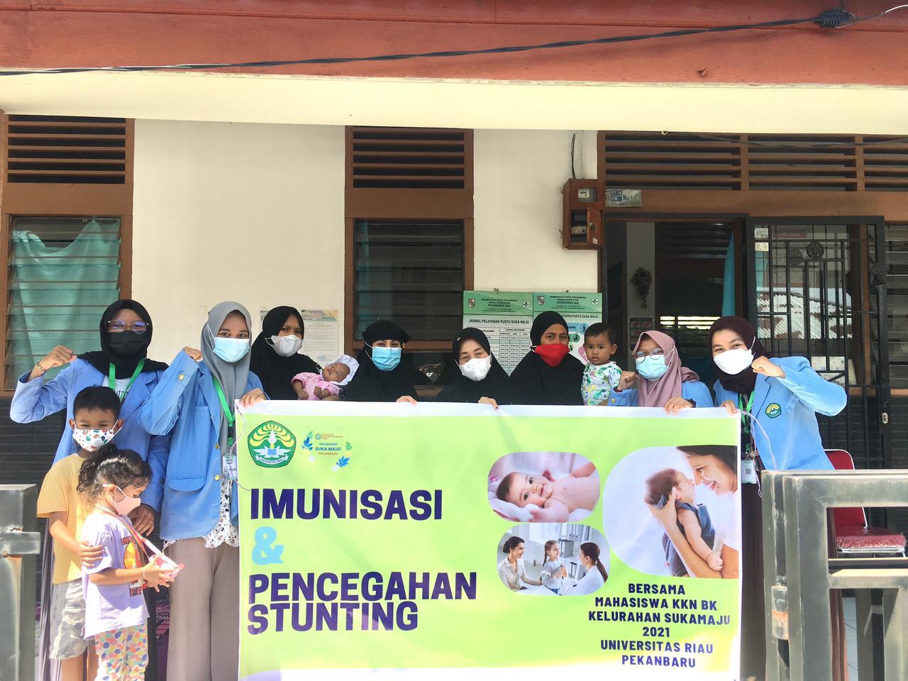 KILASRIAU.com - Mahasiswa Kuliah Kerja Nyata Balek Kampung(KKN-BK) Universitas Riau 2021 Kelurahan Sukamaju melakukan penyuluhan pencegahan stunting dan pengenalan produk Edalor dan Kemala bersamaan dengan kegiatan imunisasi dilaksanakan di Puskesmas Pembantu Kelurahan Sukamaju, Jumat (6/8/21).