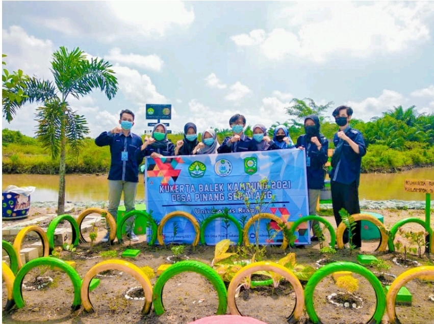 KILASRIAU.com - Mahasiswa Kuliah Kerja Nyata (KUKERTA) Balek Kampung (BK) Universitas Riau dengan Dosen Pembimbing Lapangan (DPL) Dr. Hafiz Fauzana, SP, MP melakukan kegiatan pembuatan taman hijau mini pada hari Kamis-Jumat, 12-13 Agustus 2021 di Taman Sei Perawang Kecil Kampung Pinang Sebatang, KecamatanTualang, Kabupaten Siak, Provinsi Riau.