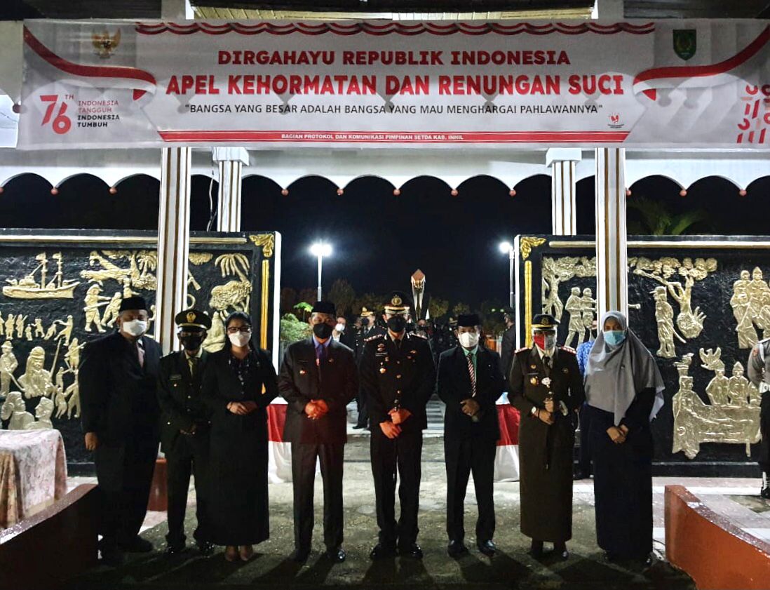 Apel kehormatan ditandai dengan mengheningkan cipta, penghormatan kepada para pahlawan dan penyalaan obor yang dipimpin oleh Kapolres Inhil yang disaksikan langsung oleh Wakil Ketua DPRD Inhil.