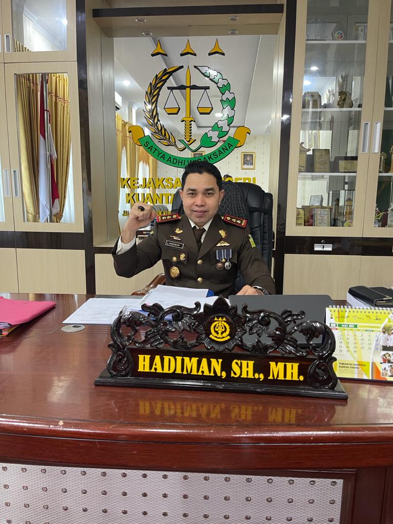 Kepala Kejaksaan Negeri (Kajari) Kuantan Singingi, Hadiman, S.H.,M.H, menurutnya hal itu sudah menjadi kewajiban untuk pihak penegak hukum mengawal jalannya pembangunan agar masyarakat dapat menikmati hasil pembangunan yang berkualitas dari uang negara. Maka demikian itu pihaknya terus memantau progres proses jalannya pembangunan di Kuansing mulai dari tahap pelelangan hingga proses pembangunannya oleh pihak ketiga.