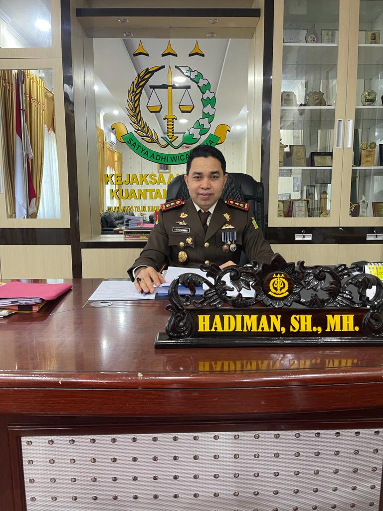 ''Intinya diproses lelang itu yang pertama dikawal. Panitia lelang harus profesional. Apabila tidak profesional atau curang, tentu akan berimbas ke kualitas pembangunannya. Dan masyarakat juga yang akan menerima hasil pembangunan yang tidak berkualiatas,'' ujar Hadiman yang merupakan Kajari terbaik Ke-3 Se-Indonesia dan Terbaik Ke-1 Se- Riau.