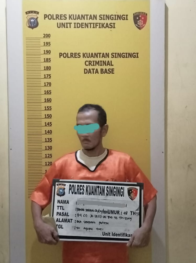 Dalam hal ini atas nama inisial MI (48) seorang laki-laki melayu dengan pekerjaan wiraswasta yang beralamat di desa Seberang Pantai Kecamatan Kuantan Mudik Kabupaten Kuantan Singingi, pada Senin (30/08/2021) sekira pukul 18.00 WIB di desa Seberang Pantai Kecamatan Kuantan Mudik Kabupaten Kuantan Singingi diamankan petugas kepolisian.