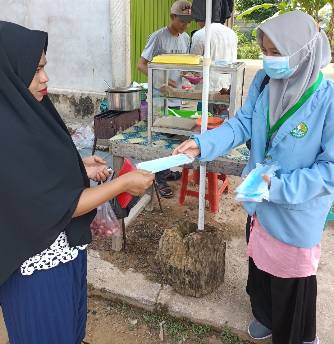 Selain membagikan masker, mahasiswa KUKERTA UNRI juga memberikan himbauan kepada masyarakat agar tetap mematuhi protokol kesehatan dengan menerapkan 4 (M) mencuci tangan, memakai masker, dan menjaga jarak.