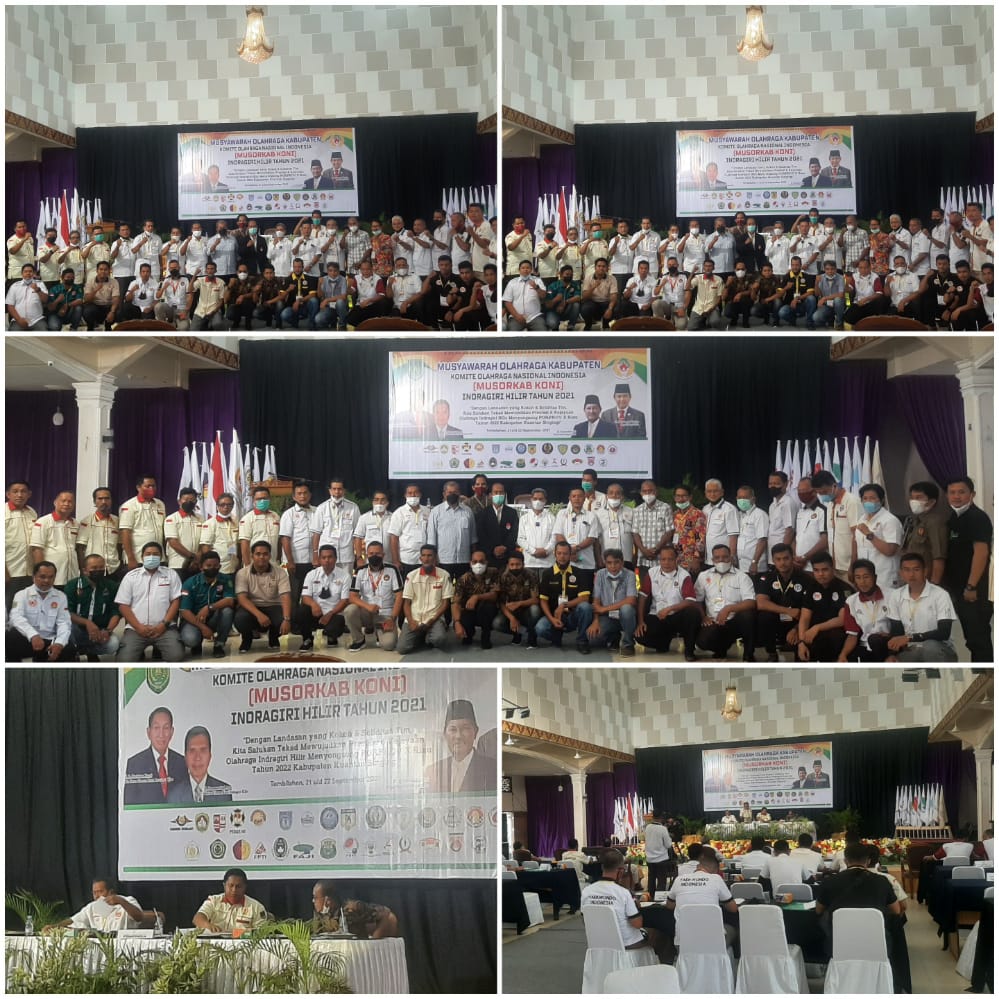 KILASRIAU.com - Musyawarah Olahraga Kabupaten Komite Olahraga Nasional Indonesia (Musorkab Koni) Tahun 2021 yang digelar di Gedung Telaga Puri Jalan Lingkar Tembilahan Syamsurizal Awi MP kembali terpilih secara aklamasi menjadi ketua umum Periode 2021- 2025, Rabu (22/09/21).