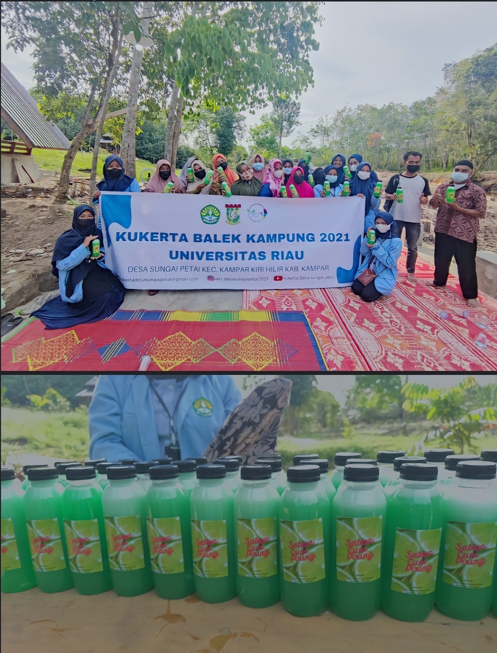 Tim pengabdian Kukerta Balek Kampung Universitas Riau dengan Dosen Pembimbing Lapangan Dr. Deviona, SP., MP. melakukan pelatihan pembuatan sabun cuci piring. Kelompok ini diketuai oleh M. Rifaldo dan anggotanya Azura Farrast Mardhya, David Nicholas, Dea Aulia Putri, Delfi Hendri Ningsih, May Dika Aisyah Zaharah, Sri Kartika Indra, serta Windy Sabiliani.
