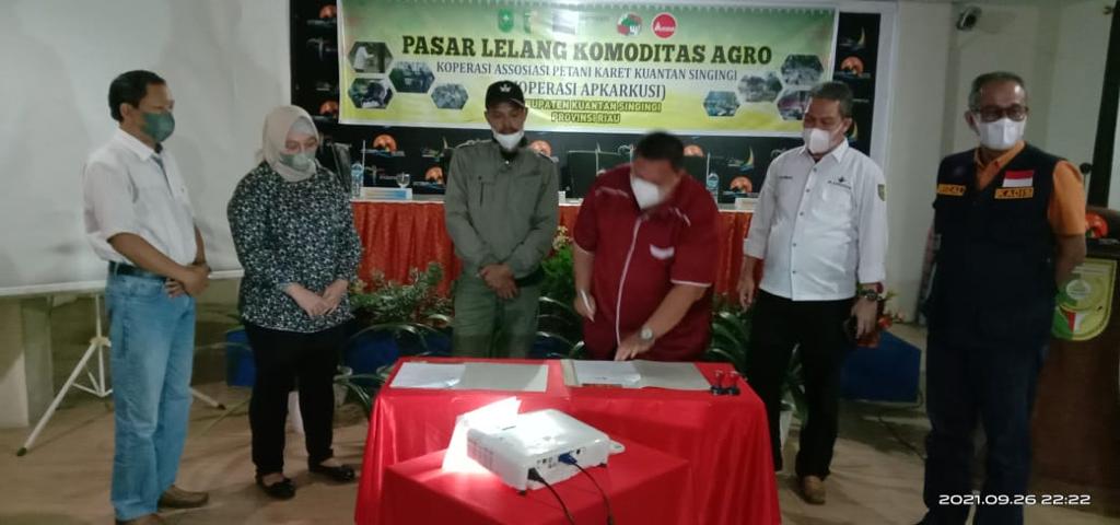 Pelaksanaan Pelelangan karet yang dilakukan pada Minggu malam (26/9/2021) bertempat di Hotel Angela, disamping dihadiri oleh pihak kementerian perdagangan RI juga dihadiri oleh Kepala Dinas Perindustrian Perdagangan dan Koperasi UKM Provinsi Riau, Asrizal serta Kepala Dinas Koperasi UKM Perdagangan dan Perindustrian Kabupaten Kuantan Singingi Azhar.