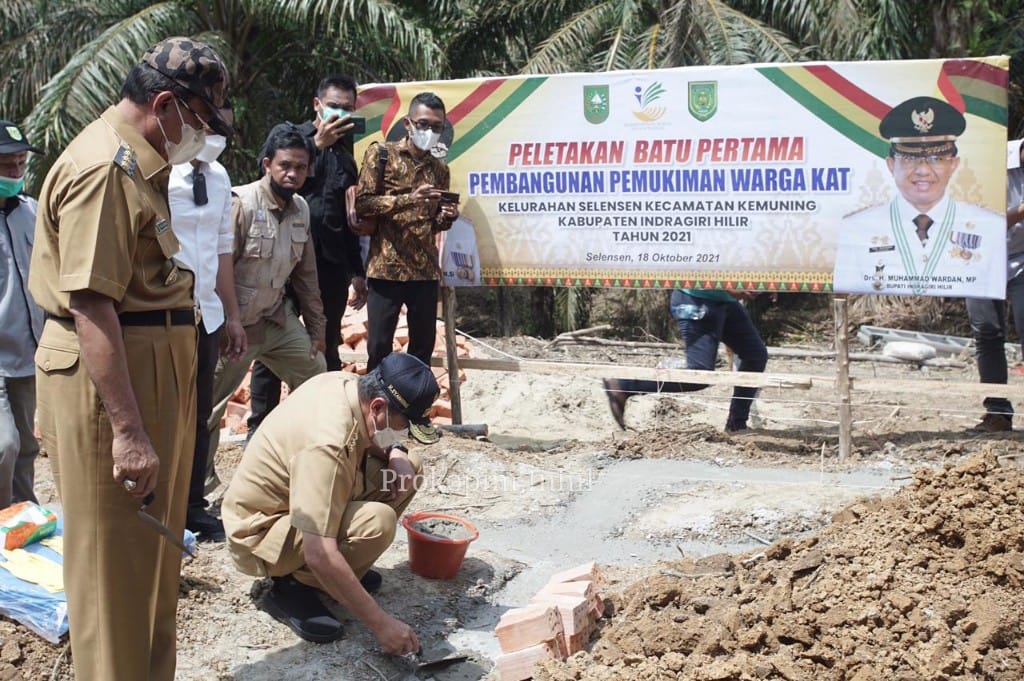 KILASRIAU.com - Dalam rangka Kunjungan Kerja (Kunker), Gubernur Riau (Gubri) Drs. H. Syamsuar, M.Si didampingi Bupati Indragiri Hilir (Inhil) Drs. HM Wardan, MP dan Istri Hj. Zulaikhah Wardan melakukan peletakan batu pertama Pembangunan Pemukiman Warga berupa 27 unit Rumah Bantuan program pemberdayaan Komunitas Adat Terpencil (KAT), dari Kementrian Sosial di Kelurahan Selensen Kecamatan Kemuning, Senin (18/10/2021).
