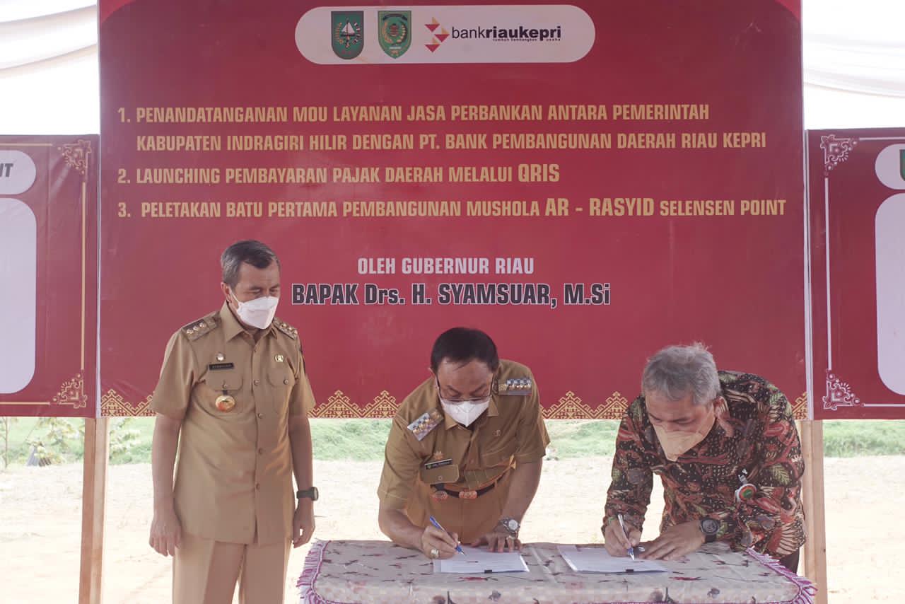 Bertempat di Wisata Alam Selensen Point, Kecamatan Kemuning, rangkaian kegiatan meliputi Penandatanganan MOU Layanan Jasa Perbankan antara Pemerintah Kabupaten Inhil dengan PT Bank Riau-Kepri, Launching Pembayaran Pajak Daerah Melalui QRIS, dan Peletakan Batu Pertama Pembangunan Mushalla Ar-Rasyid Selensen Point.