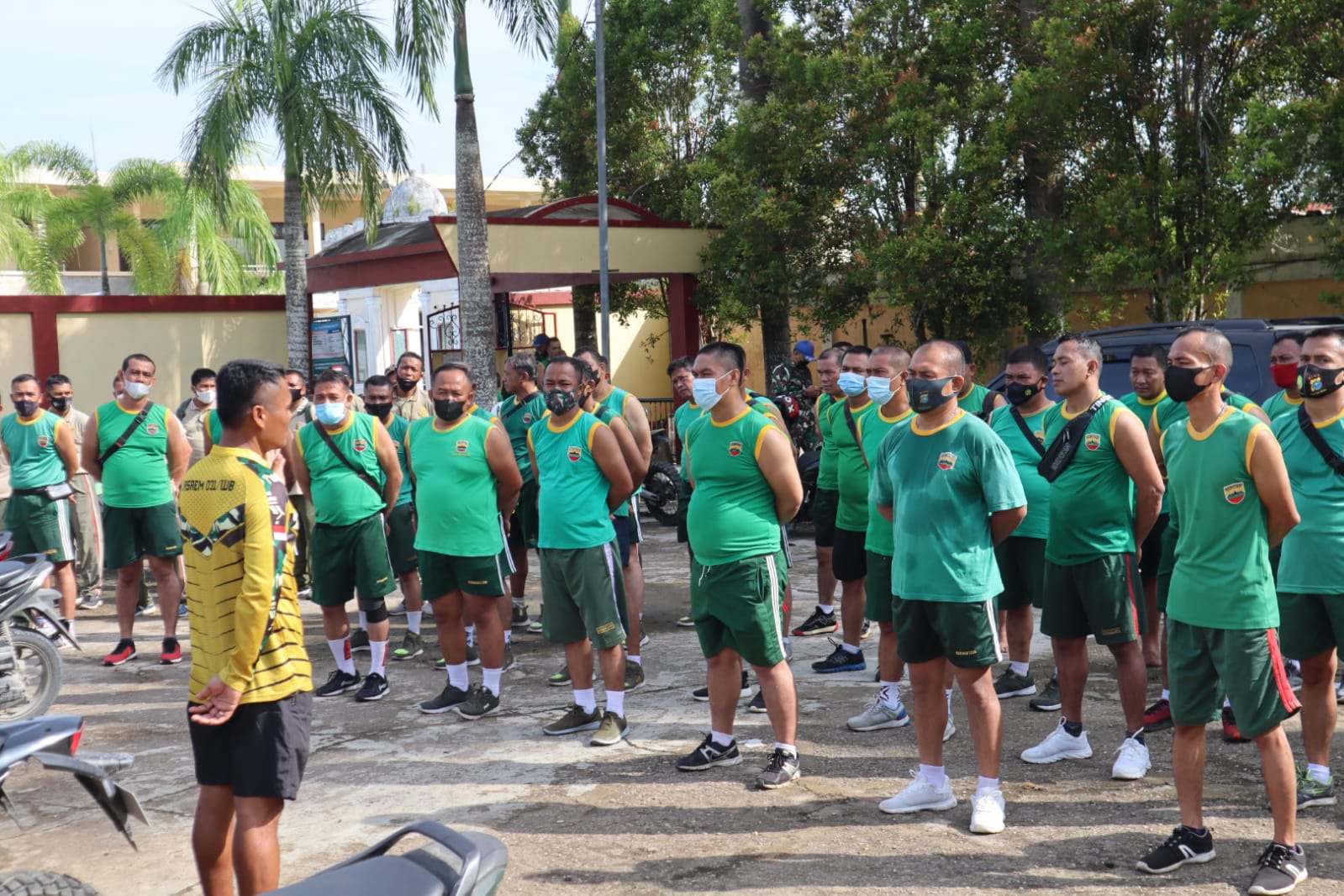 Dalam Pelaksana kesegaran Jasmani Periodik II Pajas korem 031/Wirabima Lettu Inf Oloan Aruan menyampaikan Dalam kegiatan Samapta ini jaga paktor keamanan dalam pelaksanaan kegiatan kita semuanya sehat di akhir kegiatan pun harus lebih sehat oleh sebap itu laksanakan kegiatan ini sesuai kemampuan dan ikuti Prosudur mulai dari awal hingga selesai kegiatan