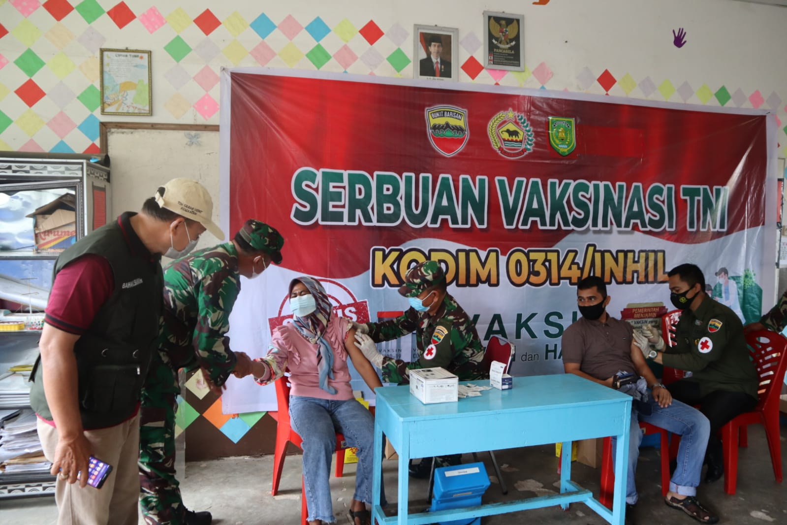 KILASRIAU.com - Percepat Vaksinasi di Kabupaten Indragiri Hilir (Inhil) Kodim 0314/Inhil Kembali mengadakan kegiatan Serbuan Vaksin di Bagan Jaya Kecamatan Enok, Sabtu (13/11/21).
