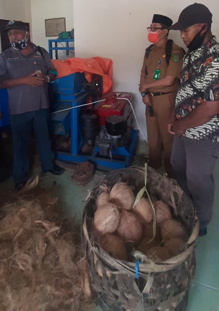 Untuk itu Dinas Perkebunan Kabupaten Inhil memberikan edukasi kepada kelompok usaha tani untuk praktek simulasi pengolahan sabut kelapa.