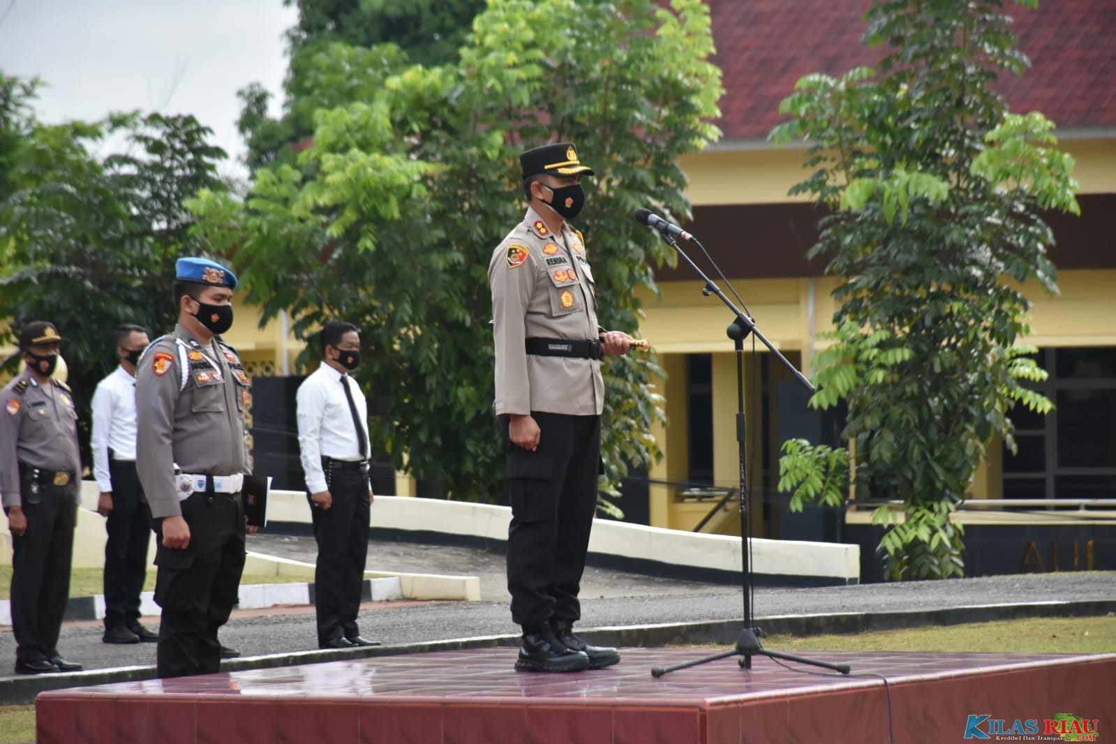 TELUK KUANTAN - Pasukan Ops Zebra 2021 dengan tema Melalui Operasi zebra 2021, AKBP Rendra Oktha Dinata, SIK M.Si pimpin langsung apel gelar pasukan, meningkatkan disiplin masyarakat dalam berlalu lintas guna memutus penyebaran covid-19.