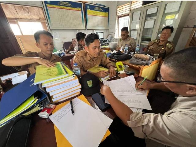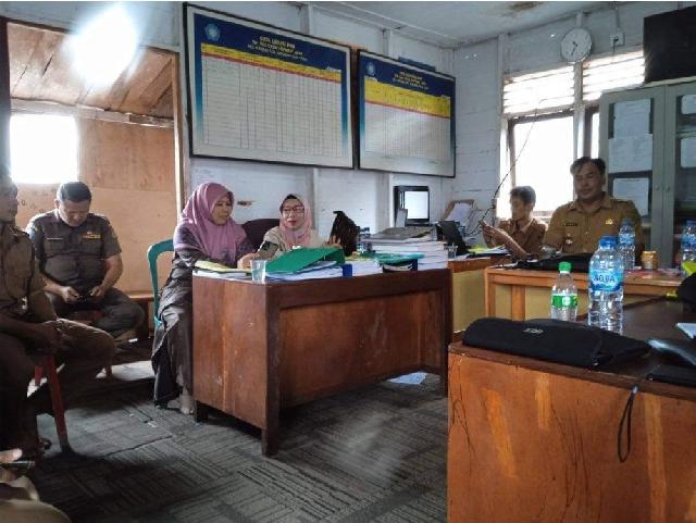 Perangkat Pemdes Sepakat Jaya menghadap Tim Monitoring Peningkatan Pengawasan Pengelolaan Keuangan Desa menurut tugas dan fungsinya masing-masing.