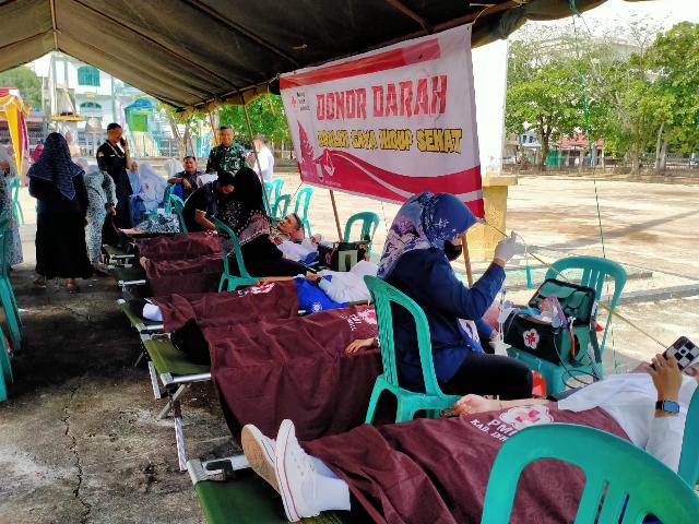 KILASRIAU.COM - Ikatan Bidan Indonesia (IBI) bersama Kodim 0314 dan Palang Merah Indonesia (PMl) Kabupaten Indragilir Hilir (Inhil) bersinergi menggelar Bhakti Sosial (Baksos) donor darah di Lapangan Gajah Mada Tembilahan.