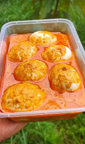 Kemudian, masakan gulai ayam dan telur kalio Ria Agustina memiliki kuah kental dan gurih, dimasak dengan banyak rempah dan pedas cabe rawit asli jadi makin mantap
