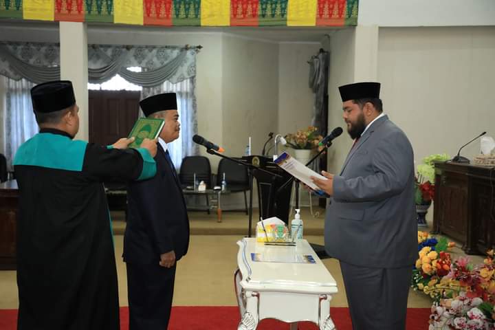 Setelah dibacakannya SK dari Gubernur Riau tersebut maka Ketua DPRD Rohul melakukan Pelantikan dan pengambilan Sumpah sekaligus menyerahkan SK jabatan anggota DPRD Rohul kepada H.Abu Bakar.