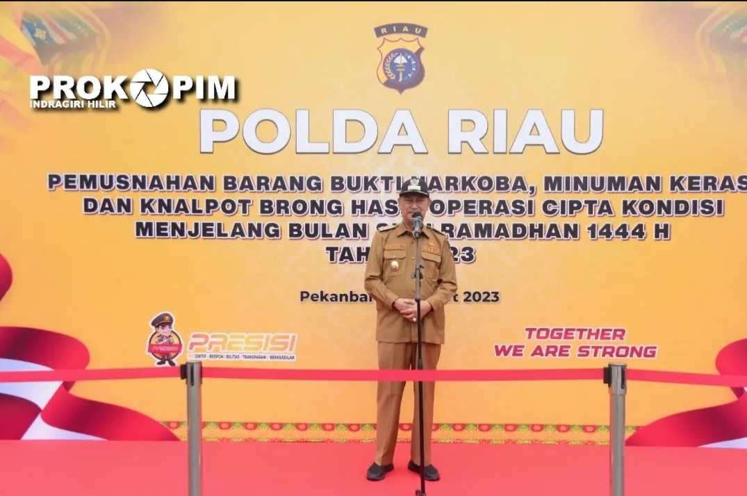 Usai apel dilanjutkan dengan pemusnahan Barang Bukti Narkoba, Minuman Keras, Knalpot Brong hasil Operasi Cipta Kondisi Menjelang Bulan Ramadhan 1444 H oleh Polda Riau.**