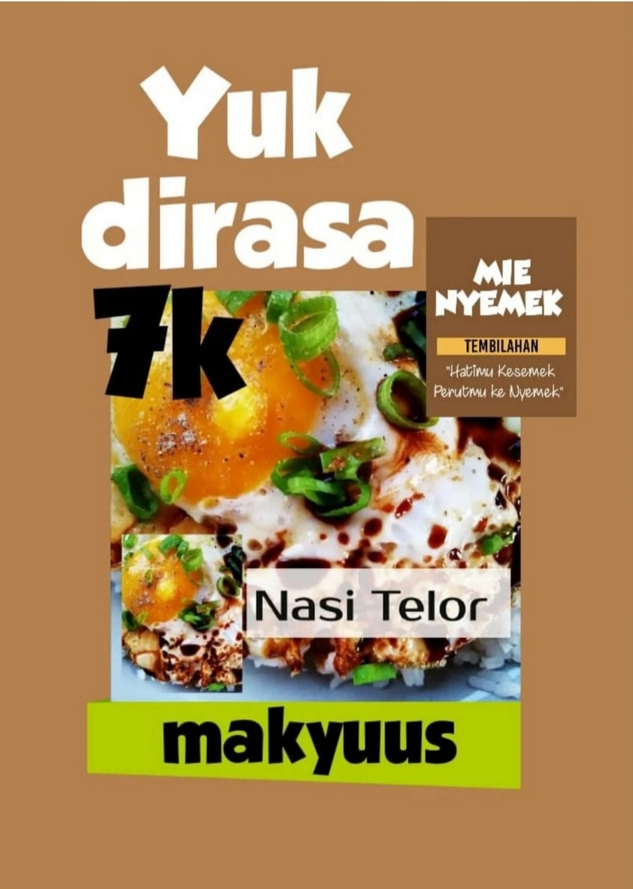 Disini tersedia banyak menu varian makanan dan minuman. Mulai dari Mie Nyemek spesial toppingnya, tempe mendoan, dan berbagai varian minuman.