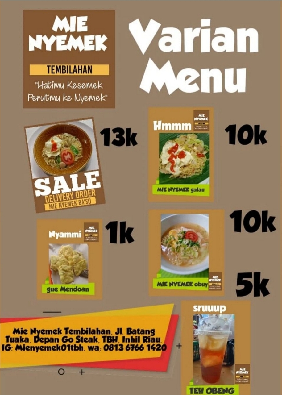 Kuy mampir dan cobain, atau order Delivery yah. Kamu pasti ketagihan dengan rasa khas dari mie nyemek.