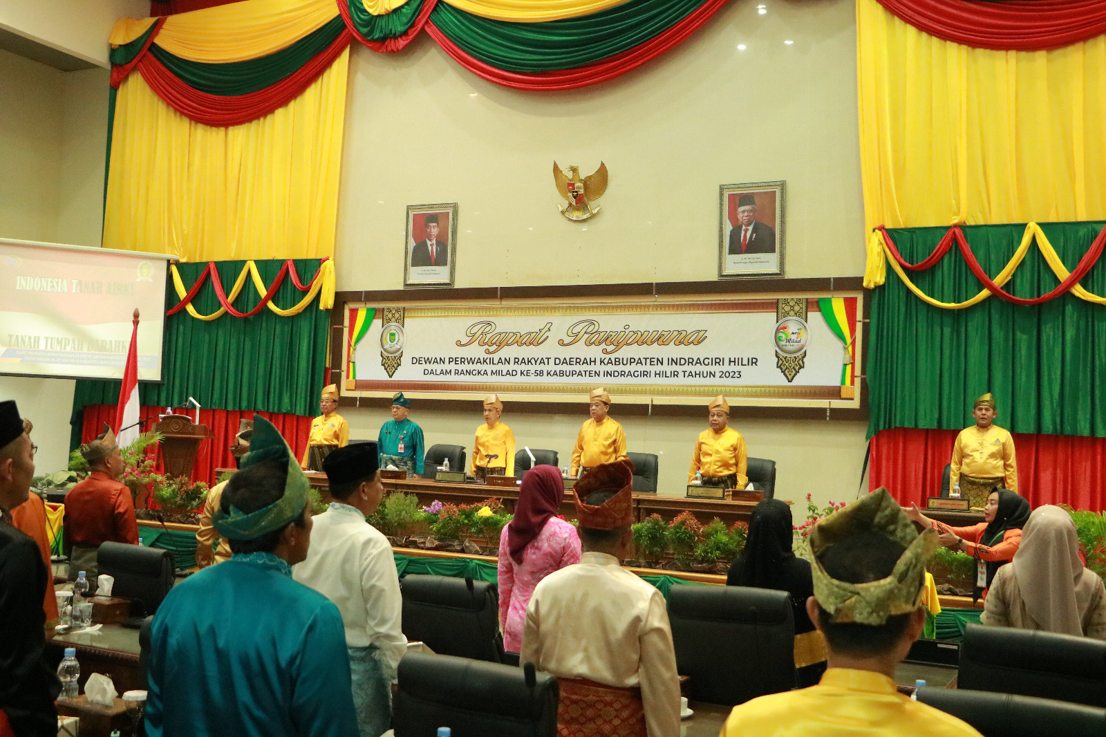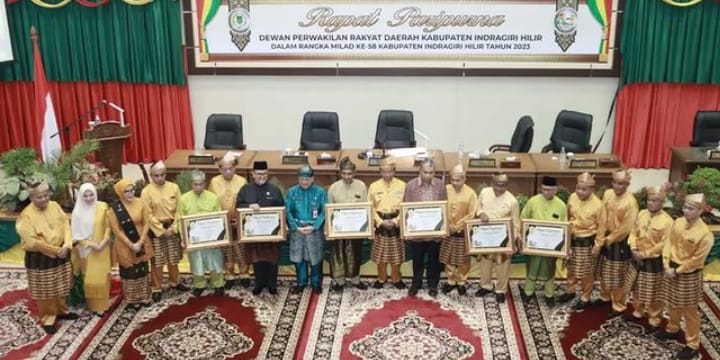 Penyerahan penghargaan gemilang award ini dilakukan setelah melaksanakan rapat paripurna istimewa milad Inhil ke-58 di gedung DPRD Kabupaten Inhil jalan Soebrantas Tembilahan.
