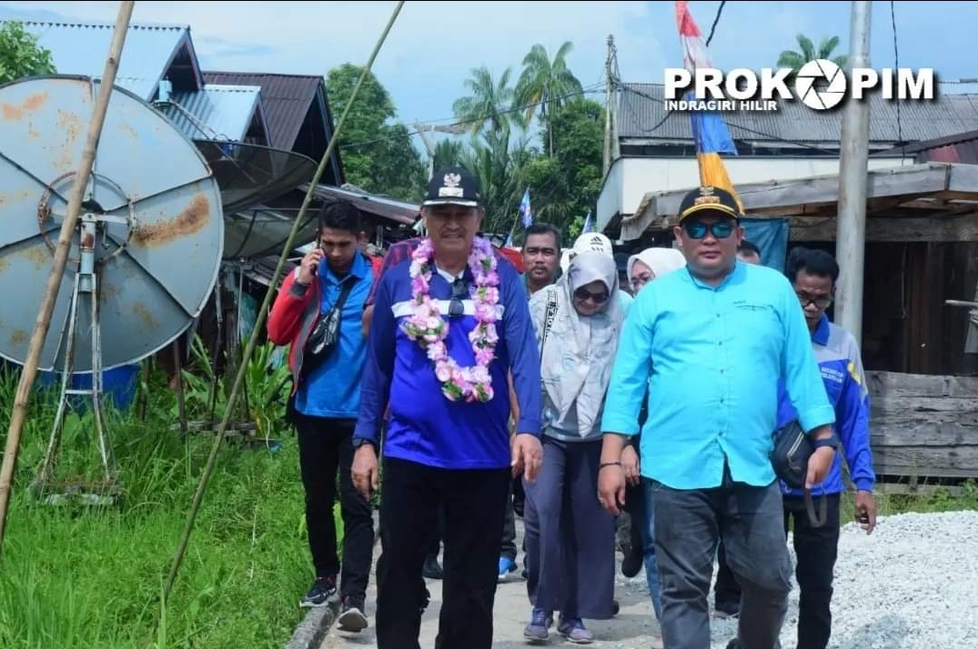 Kedatangan Wakil Bupati Inhil ke Desa Tanjung Simpang ini yang didampingi Camat disambut barisan masyarakat serta pengalungan bunga oleh anak-anak Desa Tanjung Simpang yang sudah di persiapkan oleh panitia turnament sepak bola SU CUP.