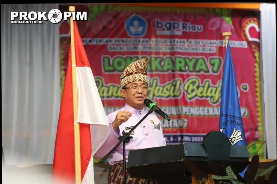 KILASRIAU.COM - Bupati Indragiri Hilir HM. Wardan Membuka Lokakarya 7 "Panen Hasil Belajar" Program Pendidikan Guru Penggerak (PPGP) Angkatan 7 yang dilaksanakan di gedung daerah Engku Kelana Tembilahan, Minggu (09/07/2023).